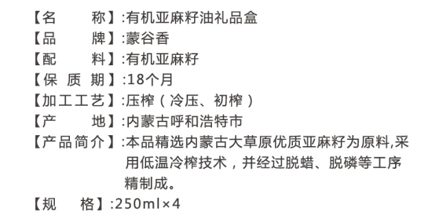 隨著消費者對亞麻籽油的關(guān)注度越來越高,蒙谷香堅持只做純物理冷榨,本著用“用良心做好產(chǎn)品”的一貫產(chǎn)品理念,為廣大消費者帶來更加健康的有機產(chǎn)品體驗。有機禮品款的上市,有效的解決了廣大消費者對蒙谷香亞麻籽油高端產(chǎn)品的需求。